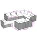 Entspannen Sie sich und genießen Sie Ihre Freizeit auf diesem trendigen Garten-Lounge-Set aus Poly Rattan! Es ist eine ausgezeichnete Wahl, um sich vom hektischen Alltag zu erholen. Robuster und leichter Rahmen: Dieses Outdoor-Lounge-Set verfügt über einen stabilen, pulverbeschichteten Stahlrahmen und verchromte Kunststofffüße, was es sehr langlebig macht. Dank der Leichtbauweise lässt sich das Loungemöbel-Set auch einfach umstellen.Wasserbeständiges Material: Aus wasserfestem Material gefertigt, hält die Garten-Sofagarnitur Feuchtigkeit und Regenwetter stand. Sie lässt sich bei Bedarf auch einfach mit einem feuchten Tuch reinigen.Modulares Design: Dank des modularen Designs lässt sich das Möbelset in jeder beliebigen Anordnung aufstellen oder mit anderen modularen Elementen kombinieren, um Ihren Bedürfnissen gerecht zu werden.Komfortable Kissen: Die dick gepolsterten und abnehmbaren Kissen bieten Ihnen optimalen Komfort in Ihrer Freizeit. Hinweis:Um die Lebensdauer deiner Gartenmöbel zu verlängern, empfehlen wir dir, sie mit einer wasserdichten Hülle zu schützen.