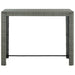 An diesem stilvollen Gartenbar-Set können Sie eine entspannte und angenehme Zeit mit Ihrer Familie und Ihren Freunden verbringen. Der Bartisch wird von einem pulverbeschichtetem Stahlgestell getragen, was ihn stabil und robust macht. Die Tischplatte bietet so den idealen Platz für Getränke, Snacks oder einige Dekoartikel. Die Hocker verfügen über eine robuste Stahlrahmen-Konstruktion und bestehen aus witterungsbeständigem PE-Rattan, was eine hohe Stabilität gewährleistet. Zudem lassen sie sich auch einfach umstellen. Das Kissen und die Fußstütze sorgen für zusätzlichen Sitzkomfort. Der Kissenbezug aus Polyester lässt sich dank des verdeckten Reißverschlusses ganz einfach abnehmen und reinigen.