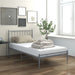 Genießen Sie eine gute Nachtruhe auf diesem komfortablen Bettgestell! Das Einzelbett besitzt eine solide Konstruktion aus pulverbeschichtetem Metall, was es äußerst robust und langlebig macht. Die stabilen Latten bieten den nötigen Halt und Komfort. In diesem Metallbett können Sie jede Nacht ein großartiges Schlaferlebnis genießen! Bitte beachten Sie: Die Lieferung umfasst nur das Bettgestell. Matratzen sind nicht enthalten. Sie können in unserem Shop eine dazu passende Matratze kaufen.