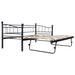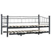 Dieses elegante und solides Metall-Tagesbett wird überall ein echter Hingucker sein. Dieser Tag Bett verfügt über ein ausziehbares Bett mit vier Rädern, zwei davon feststellbar. Dadurch können Sie Gästen einen zusätzlichen Schlafplatz anbieten. Es kann als ein Bett und als Sitzfläche genutzt werden, so dass Sie das Beste aus den verfügbaren Platz zu machen. Der robuste Metallrahmen ist kratz- und stoßfest. Die bogenförmigen Lamellen werden zu Ihrem Schlafkomfort beitragen. Dieser stilvolle multifunktionale Bettrahmen ist eine fantastische Lösung für jeden Raum, der ein Bett oder stilvolle Sitzgelegenheiten benötigt. Das Bett ist geeignet für Matratzen der Größe von bis zu 90×200 cm/180×200 cm, je nachdem, wie Sie das Bett brauchen. Bitte beachten Sie: die Lieferung beinhaltet nur den Bettrahmen. Eine Matratze ist nicht inbegriffen. In unserem Shop finden Sie die passenden Matratzen.
