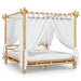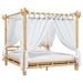 Dieses Himmelbett bietet dir Schutz von allen Seiten und hilft dir auch, das Licht abzuschirmen, damit du eine gute Nachtruhe genießen kannst. Rundum-Vorhänge: Dieses Bettgestell mit Vorhängen verfügt über ein klassisches 4-seitiges Design für einfachen Zugang, das Fliegen, Mücken und andere Insekten von dir Haut fernhält. Darüber hinaus schirmen die Vorhänge helles Licht ab, und sorgen für eine hohe Schlafqualität.Rustikale Dekorationen: Dieses Bambus-Bett hat ein einfaches Design, das deiner bestehenden Einrichtung eine natürliche Atmosphäre verleiht und eine rustikale Atmosphäre schafft.Stabiler Bettrahmen: Das Bett aus Bambus sorgt für Robustheit und Stabilität. Die Latten bieten zusätzlichen Halt. Hinweis:Die Lieferung umfasst ein Bettgestell mit Lattenrost. Die Matratze ist nicht im Lieferumfang enthalten. Die passenden Matratzen findest du in unserem Shop.