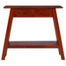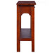 Der Konsolentisch aus Holz verleiht Ihrem Wohnzimmer einen klassischen Look. Der Flurtisch ist aus massivem Mahagoniholz handgefertigt und somit robust und stabil. Mahagoni ist mit seiner geraden und gleichmäßigen Maserung fast frei von Hohlräumen und widersteht Holzfäule. Seine rotbraune Farbe verdunkelt sich mit der Zeit und weist beim Polieren einen rötlichen Schimmer auf. Die Handwerkskunst und die schöne Holzmaserung machen dabei jedes Möbelstück zu einem Unikat. Dieser Konsolentisch bietet auch reichlich Stauraum, um wichtige Sachen organisiert und griffbereit aufzubewahren. Wichtiger Hinweis: Farbe und Maserung variieren von Stück zu Stück, so dass jedes Möbelstück einzigartig ist. Die Lieferung erfolgt nach dem Zufallsprinzip.