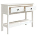 Verleihe deinem Zimmer mit diesem klassischen Konsolentisch aus Holz einen schönen Touch! Er ist eine praktische und dekorative Ergänzung für dein Zuhause. Massives Kiefernholz: Massives Kiefernholz ist ein wunderschönes Naturmaterial. Kiefernholz weist eine gerade Maserung auf und die Aststellen verleihen dem Material seine charakteristische, rustikale Optik.Stabil: Der Holzrahmen sorgt für Robustheit und Stabilität.Ausreichend Stauraum: Der Flurtisch verfügt über 2 Schubladen und 1 Ablage. So hast du genügend Stauraum, um verschiedene Dinge des täglichen Bedarfs geordnet und griffbereit aufzubewahren.Stabile Platte: Die Tischplatte dieses Beistelltisches eignet sich perfekt, um deine Dekoartikel, Bilderrahmen und Topfpflanzen zu präsentieren.Vielseitig einsetzbar: Dieser Sofatisch ist überall in deinem Zuhause einsetzbar. Er kann als Eingangstisch, Couchtisch, Dekotisch, TV-Konsolentisch usw. verwendet werden. Warnung:Um das Umkippen zu verhindern, muss dieses Produkt mit der mitgelieferten Wandhalterung gesichert werden. Hinweis:Jedes Produkt wird mit einer Montageanleitung in der Verpackung für eine einfache Montage geliefert.
