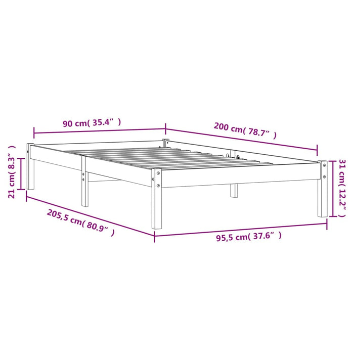 Gestalten Sie Ihr Schlafzimmer modern mit diesem Bettrahmen aus Massivholz! Er ist eine praktische und dekorative Ergänzung für Ihre Einrichtung. Massives Kiefernholz: Das Bett ist aus massivem Kiefernholz gefertigt. Massives Kiefernholz ist ein wunderschönes Naturmaterial. Kiefernholz weist eine gerade Maserung auf und die Aststellen verleihen dem Material seine charakteristische, rustikale Optik.Robuste Latten: Die Sperrholzlatten sorgen für eine gute Gewichtsverteilung und auch dafür, dass die Matratze bei jeder Bewegung Ihres Körpers während des Schlafes an Ort und Stelle bleibt.Stabiler Bettrahmen: Der Holzrahmen verleiht dem Bettgestell Robustheit und Stabilität.Passende Lösung: Das Einzelbett bietet eine großartige Lösung für kleine Räume, multifunktionale Zimmer, Einzelschläfer und ältere Kinder. Wie auch immer du dein Zimmer dekorieren möchtest, dieses Einzelbett wird all deinen Anforderungen gerecht! Gut zu wissen:Bei diesem Bett ist keine Matratze im Lieferumfang enthalten. Wir bieten jedoch eine große Auswahl an Matratzen an. Du kannst in unserem Shop nach einer passenden Matratze suchen.
