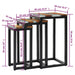 Diese kompakten Satztische sind stilvoll und praktisch und bilden einen echten Mittelpunkt in Ihrem Wohnraum. Die Satztische sind aus extrem langlebigem Teakholz gefertigt, im Ofen getrocknet und anschließend fein geschliffen, um ein sehr glattes Erscheinungsbild zu erzielen. Teakholz ist bekannt für seine außergewöhnliche Festigkeit und Witterungsbeständigkeit. Teak-Massivholz ist die perfekte Wahl, wenn Sie ein langlebiges und wertvolles Möbelstück kaufen möchten. Da diese Tische stapelbar sind, sparen sie bei Nichtgebrauch viel Stauraum. Das Polyresin aus zerkleinertem Glas und die feine Handwerkskunst verleihen diesen Tischen einen spektakulären Retro-Stil. Jeder Schritt des Prozesses wird mit größter Sorgfalt durchgeführt, sei es Polieren, Lackieren oder Anstreichen. Wichtige Anmerkung: Farben können von Produkt zu Produkt variieren, jeder Tisch wird somit einzigartig; die Lieferung erfolgt zufällig.