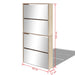 Dieser moderne und stilvolle Spiegel-Schuhschrank bietet eine perfekte Lösung um Ordnung ins Schuhchaos zu bringen. Der Spiegelschrank hat vier Klappfächer mit jeweils Platz für 3 bis 4 Paare Schuhe. Das Schuhregal wird direkt an der Wand montiert. Dieser robuste und langlebige Flurschrank ist aus hochwertigem Material hergestellt und ist eine äußerst praktische Ablage, um Ihre Schuhe stilvoll und übersichtlich aufzubewahren.